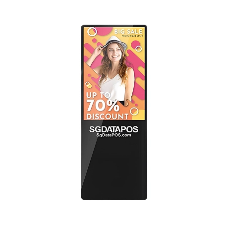 Kiosk ตั้งพื้น ดีไซน์เพรียวบาง (Slim Design) มาพร้อมระบบ Android ในตัว ช่วยให้คุณนำเสนอโปรโมชั่น